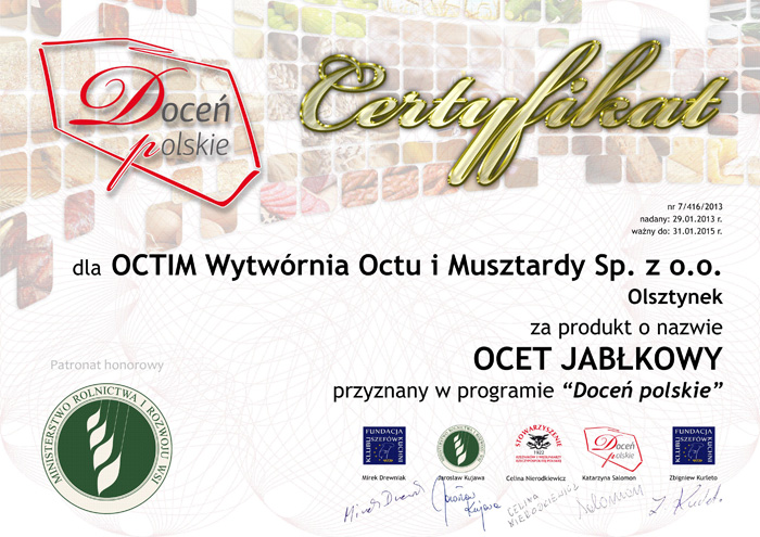 docen_polskie_Octim_ocet-jablkowy Published 8 lutego 2013 at 700 × 495 in Certyfikat „Doceń polskie” dla Octu jabłkowego OCTIM