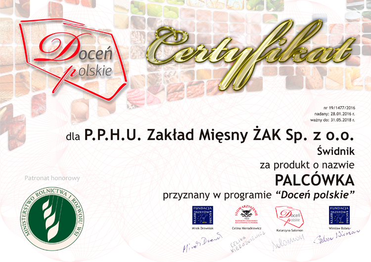 docen_polskie_ZM-Zak_Palcowka Published 17 lutego 2016 at 750 × 530 in Certyfikat „Doceń polskie” dla Zakładu Mięsnego „Żak”