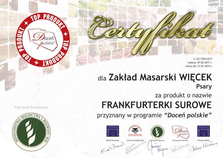 docen_polskie_ZM-Wiecek_frankfurterki-surowe Published 14 lutego 2017 at 750 × 530 in Cztery godła „Doceń polskie” wędrują do ZM „WIĘCEK”