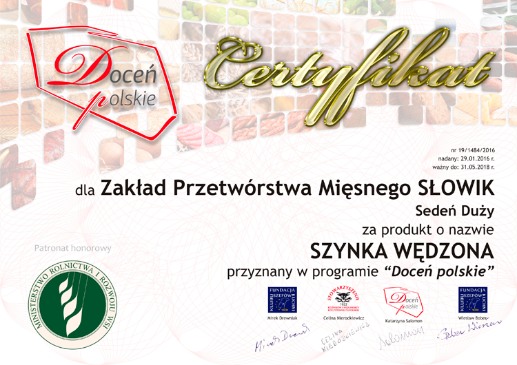 docne_polskie_ZPM-Slowik_szynka-wedzona Published 9 lutego 2016 at 750 × 530 in Dwa certyfikaty i tytuł TOP PRODUKT dla mazowieckiej firmy