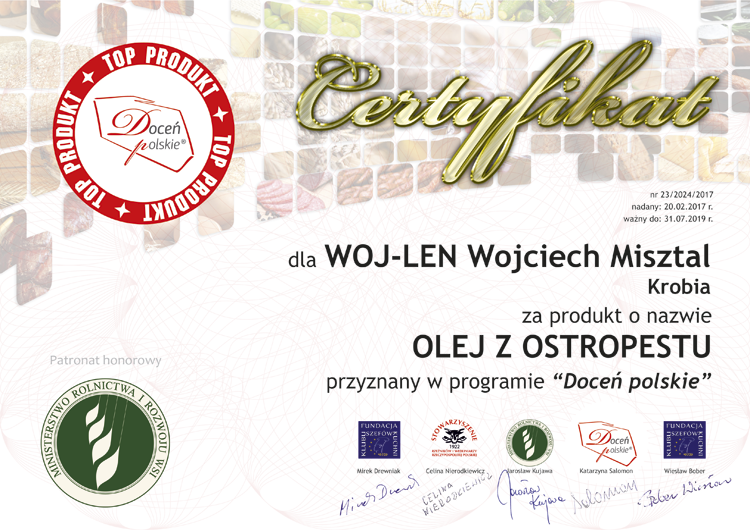 docen_polskie_Woj-len_olej-z-ostropestu Published 13 marca 2017 at 750 × 530 in Dwa certyfikaty trafią do Krobi