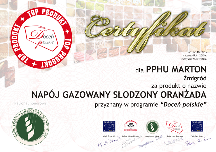 docen_polskie_Marton_oranzada Published 16 listopada 2015 at 750 × 530 in Firma „MARTON” zdobywa kolejne certyfikaty „Doceń polskie”