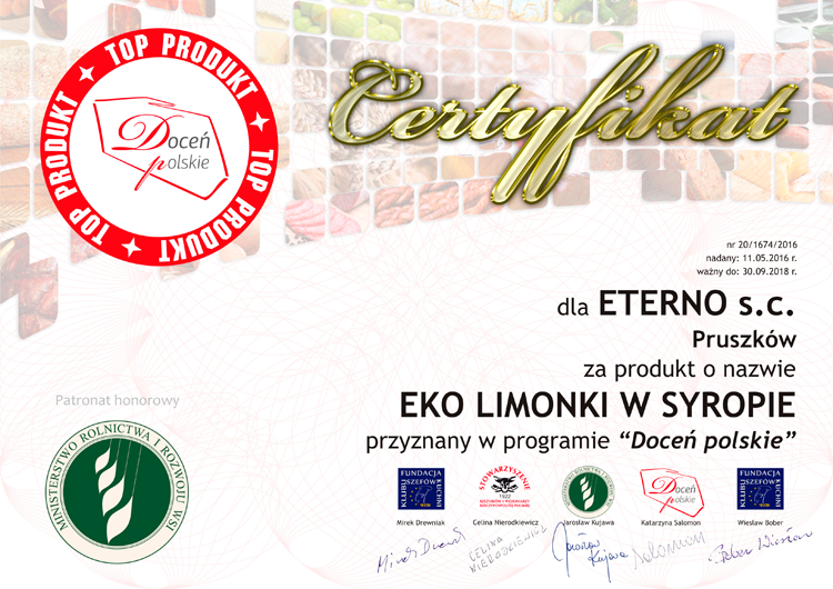 docen_polskie_Eterno_eko-limonki-w-syropie Published 17 maja 2016 at 750 × 530 in Kolejne certyfikaty dla specjałów ETERNO