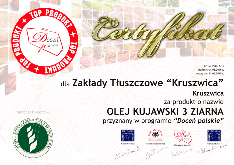 docen_polskie_Kruszwica_olej-kujawski-3-ziarna Published 8 lutego 2016 at 750 × 530 in Kolejny TOP PRODUKT dla oleju Kujawskiego 3 Ziarna