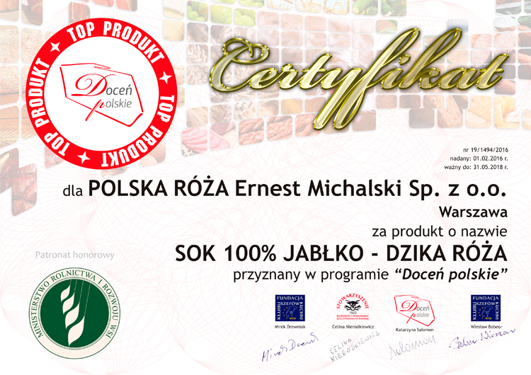 docen_polskie_Polska-Roza_sok-100-jablko-dzika-roza Published 9 lutego 2016 at 750 × 530 in Lista laureatów programu „Doceń polskie” stale rośnie!