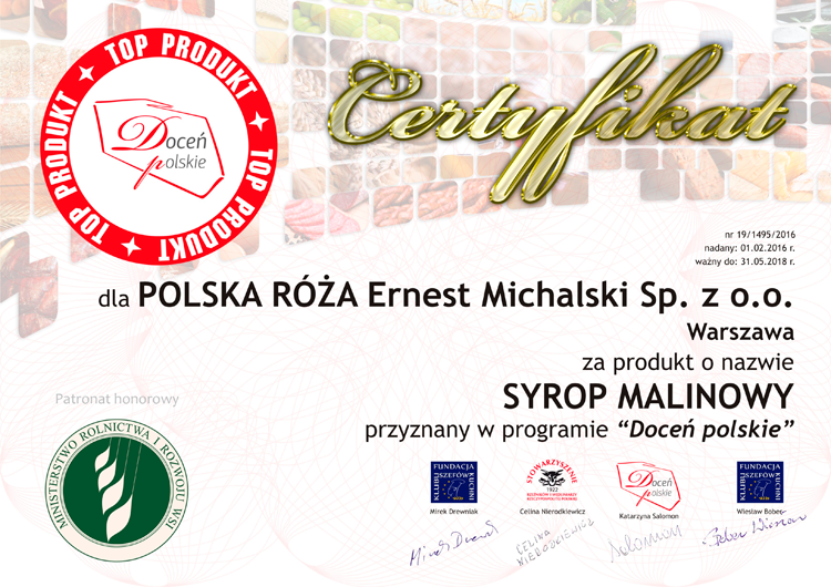 docen_polskie_Polska-Roza_syrop-malinowy Published 9 lutego 2016 at 750 × 530 in Lista laureatów programu „Doceń polskie” stale rośnie!