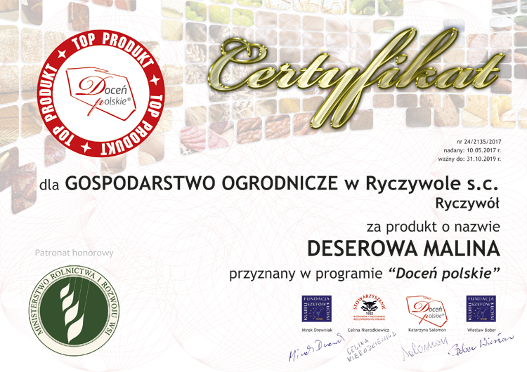 docen_polskie_Gospodarstwo-Ogrodnicze-w-Ryczywole_deserowa-malina Published 26 maja 2017 at 750 × 530 in Maksymalne noty dla owoców Gospodarstwa Ryczywół