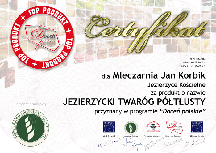 docen_polskie_Korbik_jezierzycki-twarog-poltlusty Published 7 lutego 2013 at 700 × 495 in Mleczarnia Jan Korbik laureatem styczniowego audytu