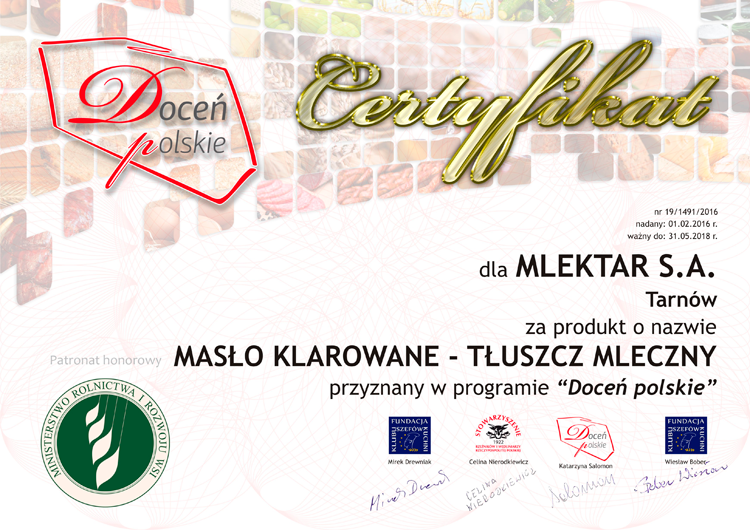 docen_polskie_Mlekar_maslo-klarowane Published 17 lutego 2016 at 750 × 530 in Mlektar S.A. ponownie nagrodzony