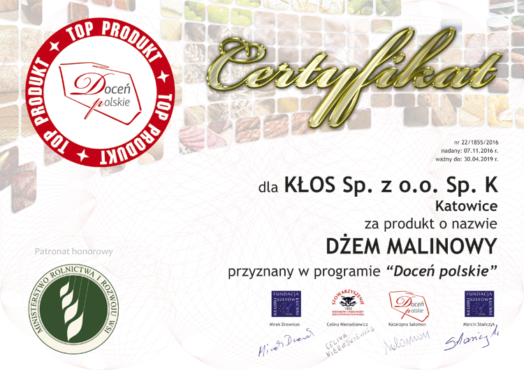 docen_polskie_klos_dzem-malinowy Published 21 listopada 2016 at 750 × 530 in Piekarnia KŁOS zdobywa kolejne laury programu „Doceń polskie”