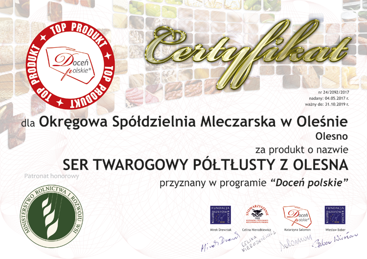 docen_polskie_OSM-w-Olesnie_ser-twarogowy-poltlusty Published 14 maja 2017 at 750 × 530 in Przedstawiamy kolejnego laureata XXIV atestacji żywności