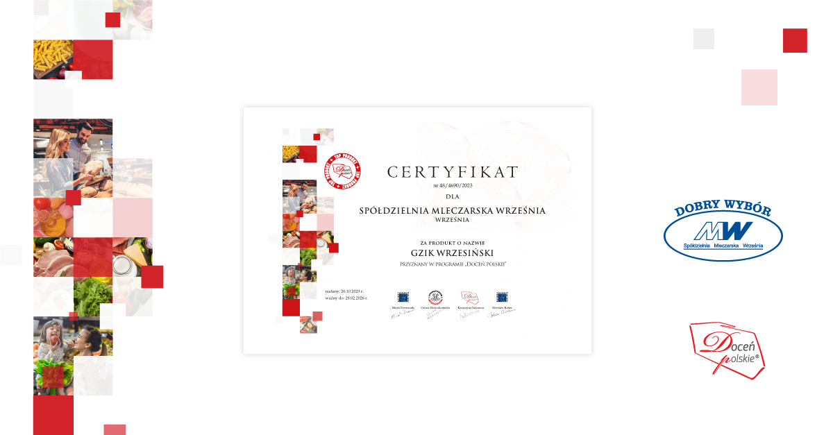 SMW Września wzięła udział w 48. certyfikacji Ogólnopolskiego Programu Promocyjnego „Doceń polskie”. Podczas atestacji jej produkt – Gzik Wrzesiński – zdobył uznanie ekspertów i został uhonorowany prestiżowym godłem „Doceń polskie TOP PRODUKT”. To wyjątkowy specjał, który wyróżnia się niepowtarzalnym smakiem i głęboko zakorzenionymi tradycjam. Jak podkreślają przedstawiciele spółdzielni – Nasz Gzik Wrzesiński stanowi ważny element dziedzictwa kulinarnego Wielkopolski. Jest on wytwarzany ręcznie, zgodnie z przekazywanymi z pokolenia na pokolenie recepturami, przy użyciu wyłącznie naturalnych składników, bez dodatków sztucznych i wzmacniaczy smaku. Mleko, używane do produkcji naszego Gzika, pochodzi od lokalnych producentów, co gwarantuje jego najwyższą jakość.