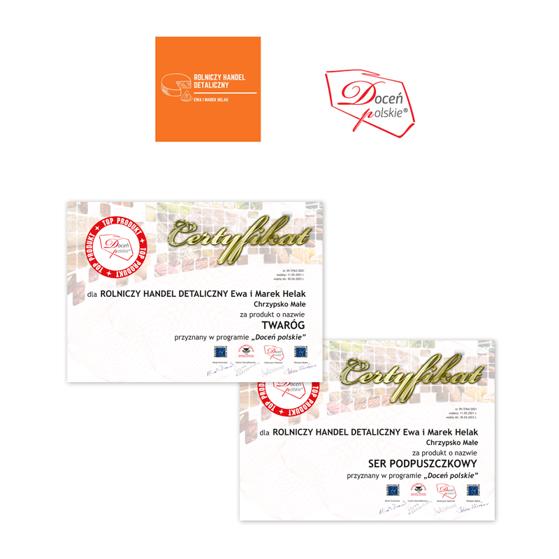 Rolniczy Handel Detaliczny Ewa Helak to producent świeżych i smakowitych serów podpuszczkowych o różnych smakach, serów twarogowych oraz masła. Firma ta została laureatem Ogólnopolskiego Programu Promocyjnego „Doceń polskie”. Podczas XXXIX atestacji Programu członkowie Loży Ekspertów przyznali najwyższe noty dwóm doskonałym propozycjom tego producenta. Godłem „Doceń polskie TOP PRODUKT” został wyróżniony Twaróg oraz Ser podpuszczkowy. Eksperci docenili ich wyjątkowe walory. Znak jakości przyznawany jest na dwa lata.