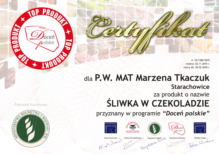 docen_polskie_Mat_sliwka-w-czekoladzie Published 18 listopada 2015 at 750 × 530 in Śliwka w czekoladzie zdobyła tytuł TOP PRODUKT