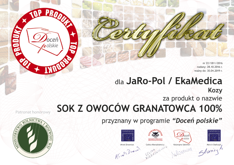 docen_polskie_jaro-pol_sok-z-owocow-granatowca Published 7 listopada 2016 at 750 × 530 in Soki EkaMedica nagrodzone po raz trzeci