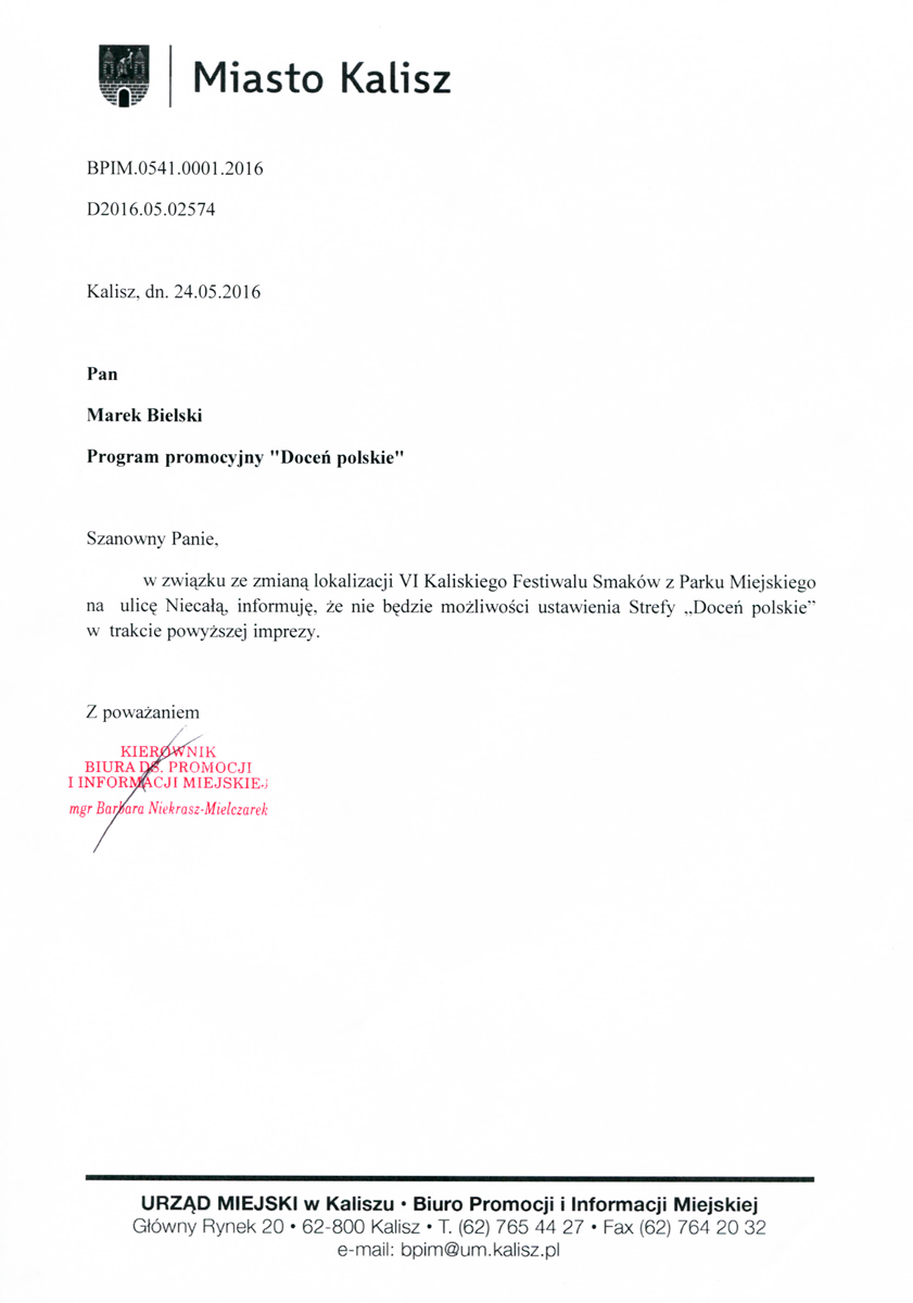 VI-Kaliski-Festiwal-Smakow_pismo_UM Published 27 maja 2016 at 841 × 1200 in Strefa „Doceń polskie” w Kaliszu odwołana