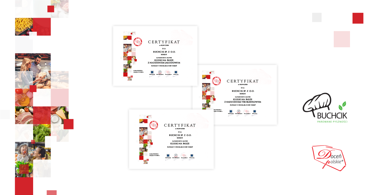 Firma Buchcik, specjalizująca się w produkcji wyjątkowych wyrobów na parze, odniosła sukces podczas 50. certyfikacji Ogólnopolskiego Programu Promocyjnego „Doceń polskie”. Trzy produkty firmy – Kluski na parze, Kluski na parze z nadzieniem truskawkowym oraz Kluski na parze z nadzieniem jagodowym – po raz kolejny zostały wyróżnione prestiżowym godłem „Doceń polskie TOP PRODUKT”. To potwierdzenie wysokiej jakości i doskonałego smaku.