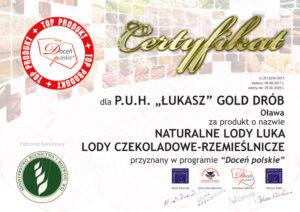 – Naturalne lody LUKA są produkowane na świeżym mleku, śmietance i wyselekcjonowanych owocach; tak jak robiły nasze bacie, dla których podstawą były naturalne produkty – w ten sposób przedstawiciele firmy P.U.H ŁUKASZ Gold Drób opisują specjał nagrodzony przez Lożę Ekspertów programu „Doceń polskie”.