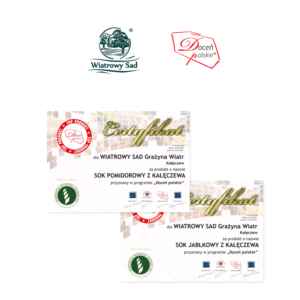 Podczas 44. certyfikacji Ogólnopolskiego Programu Promocyjnego „Doceń polskie” członkowie Loży Ekspertów ocenia dwie propozycje z oferty Wiatrowego Sadu – Sok jabłkowy z Kałęczewa oraz Sok pomidorowy z Kałęczewa. Obydwa specjały ubiegają się o przedłużenie licencji „Doceń polskie”.