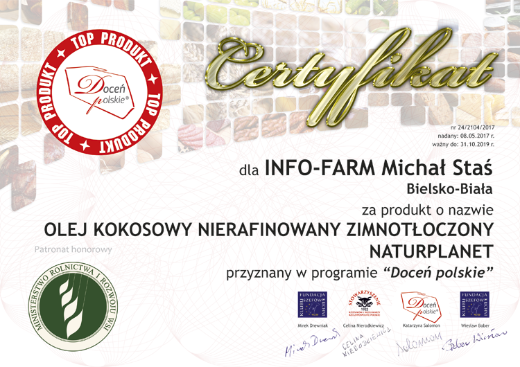 docen_polskie_Info-Farm_olej-kokosowy Published 14 maja 2017 at 750 × 530 in Tytuły TOP PRODUKT dla trzech propozycji marki NaturPlanet