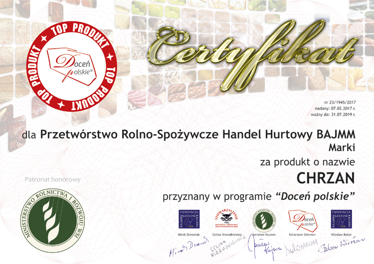 docen_polskie_Bajmm_chrzan Published 11 lutego 2017 at 750 × 530 in Wyroby BAJMM docenione w trakcie XXIII audytu żywności