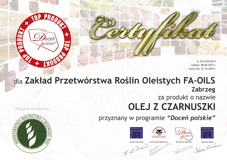 docen_polskie_Fa-Oils_olej-z-czarnuszki Published 17 maja 2017 at 750 × 530 in Wyroby FA-OILS ponownie zdobywają znaki jakości „Doceń polskie”
