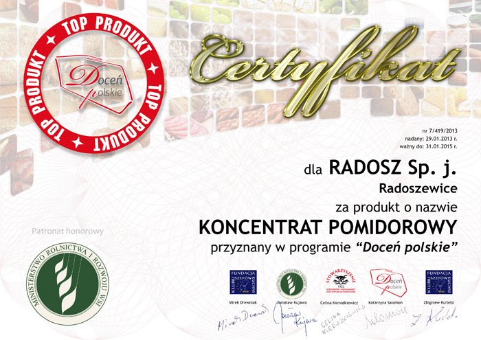 docen_polskie_Radosz_koncentrat-pomidorowy Published 30 stycznia 2013 at 700 × 495 in Wyroby marki „Radosz” zyskały uznanie Loży Ekspertów